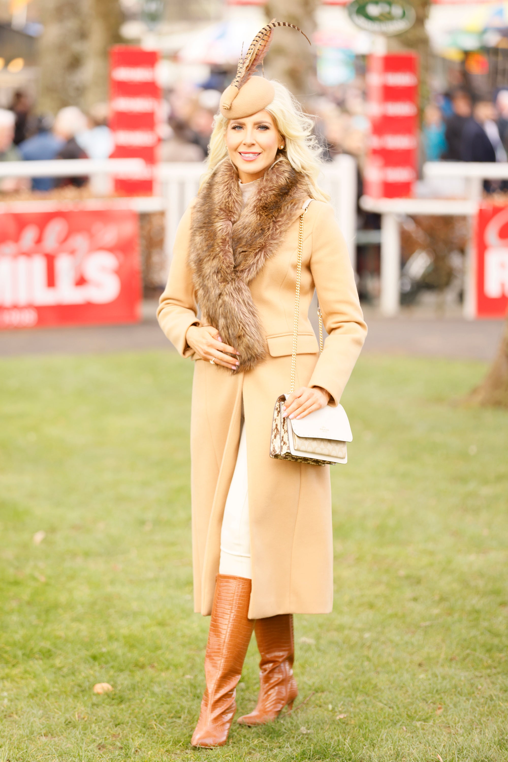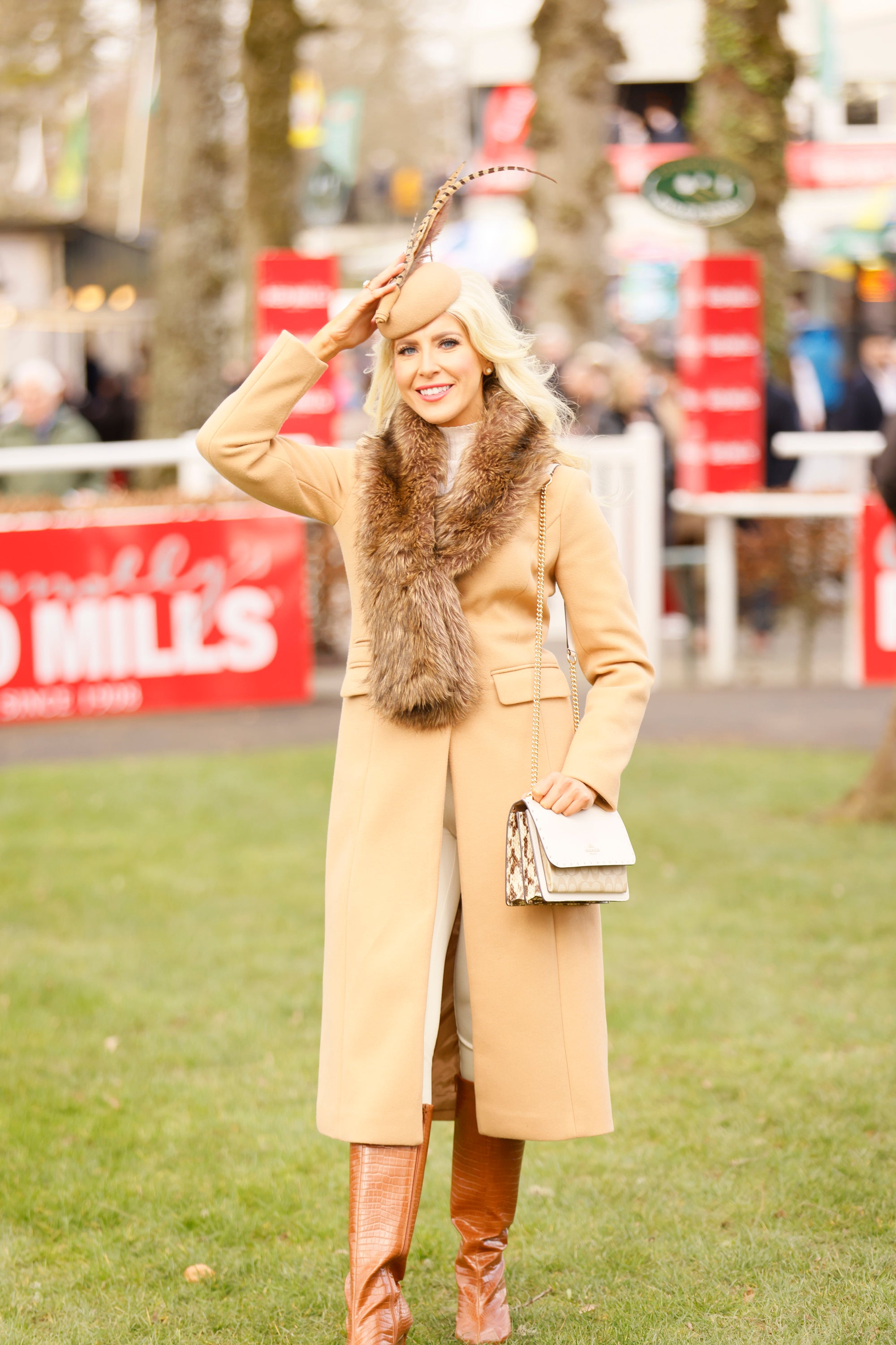 Second runner up Niamh Madden from Mooncoin was the epitome of comfort and style in her camel ensemble which she topped off with a headpiece from Hats Life hat hire in Wexford, and was delighted to take third place having come to Gowran as a treat for her boyfriend’s birthday. Both ladies won handbags from British label Fairfax & Favor, available exclusively from Red Mills in Kilkenny.