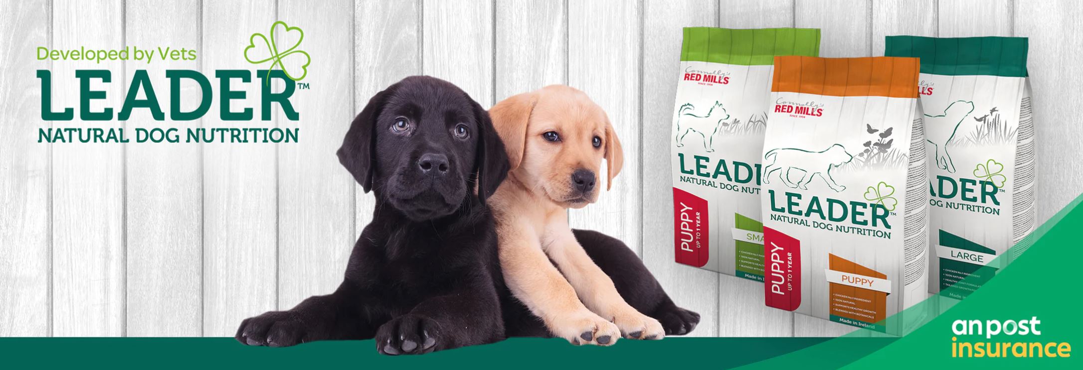 Thank you for purchasing an An Post Insurance Pet Insurance policy. Red Mills are delighted to be able to offer you a complimentary 2kg bag of dog food from our Leader range!