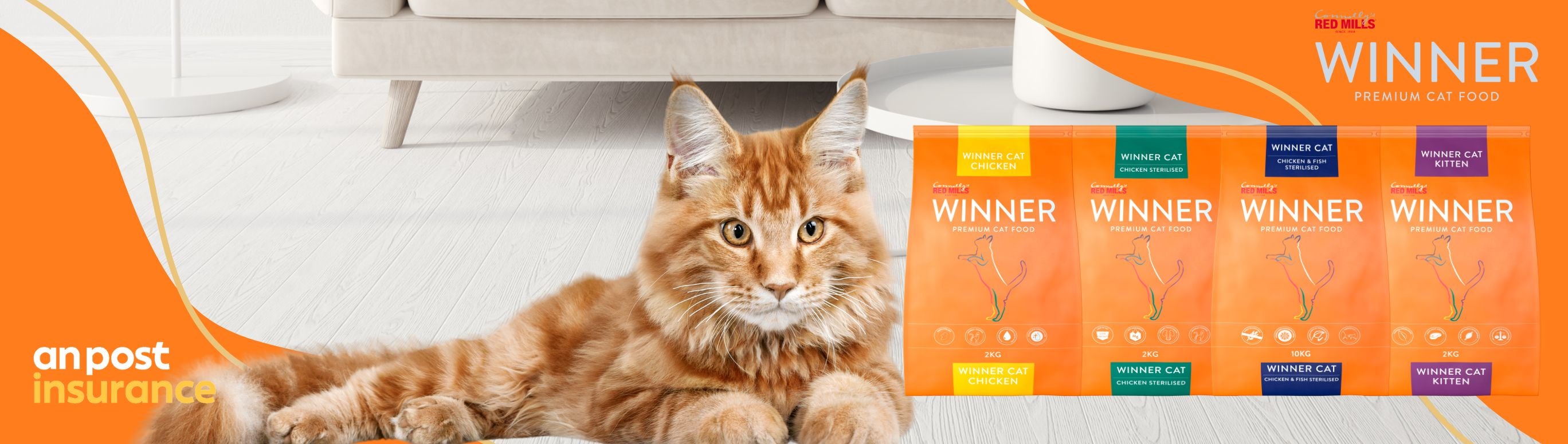 Thank You for purchasing an An Post Pet Insurance policy. Red Mills are delighted to be able to offer you a complimentary 2Kg bag of cat food from Red Mills Winner food range!